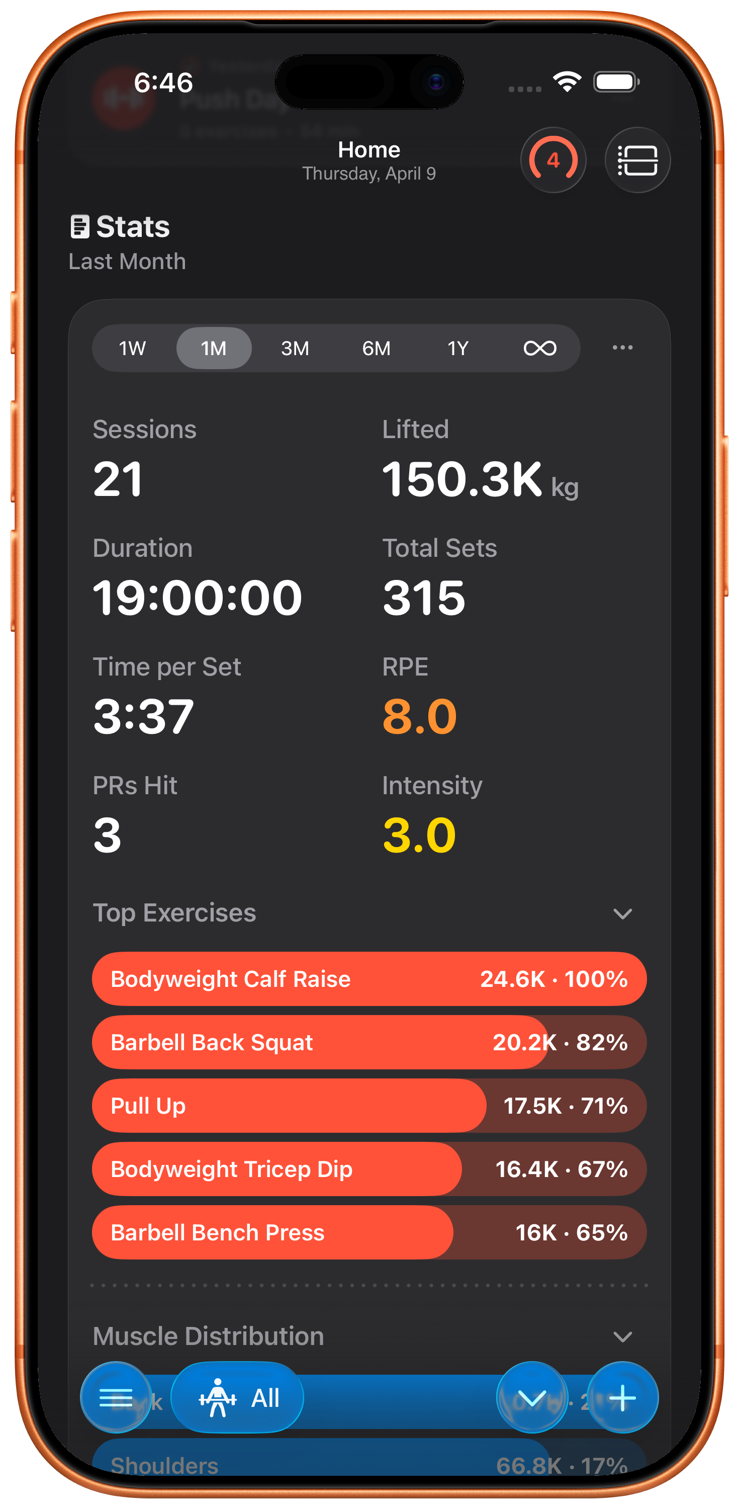 Log your Rate of Perceived Exertion after each set to fine-tune your training intensity and track how hard you're really working.