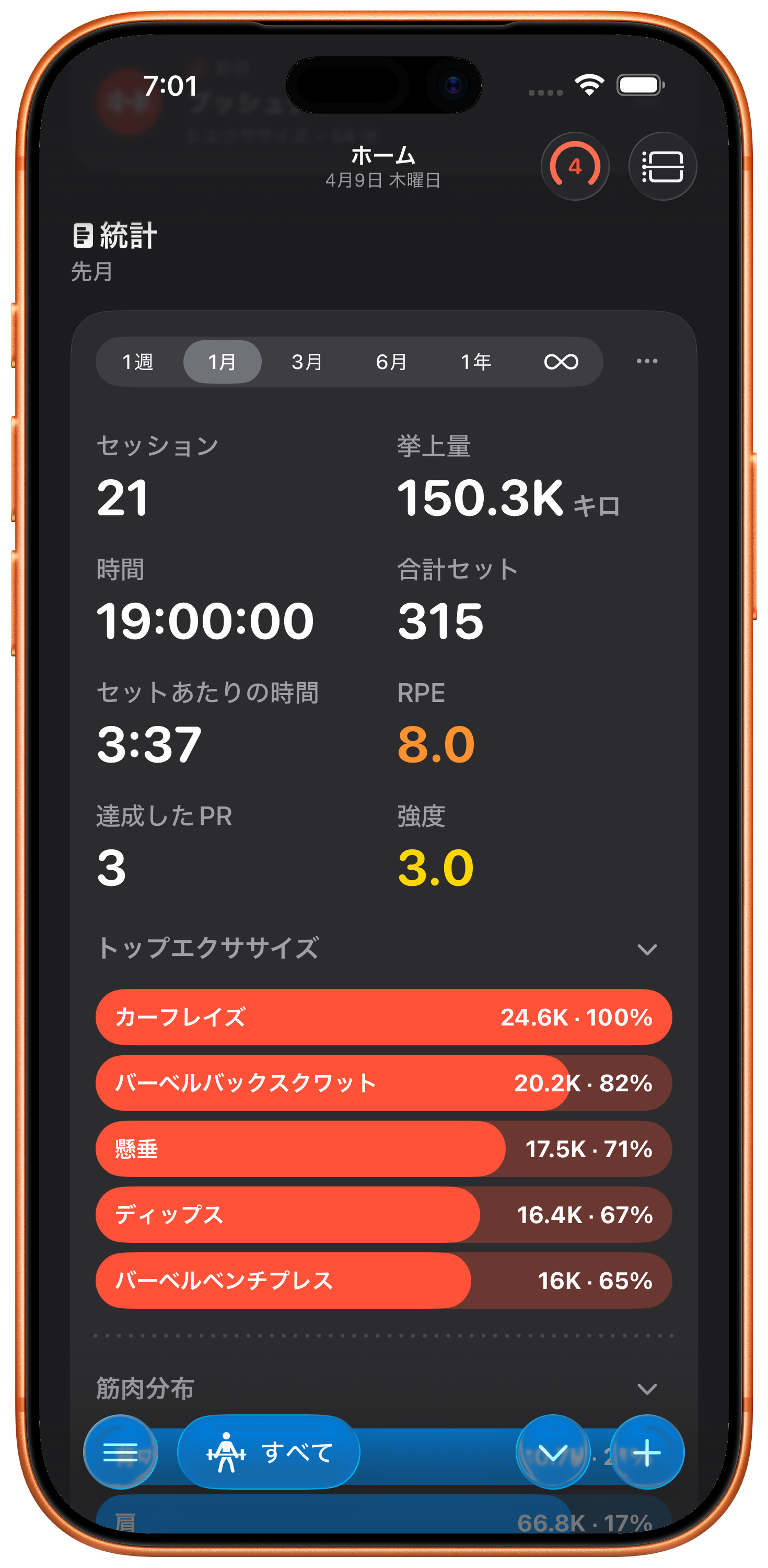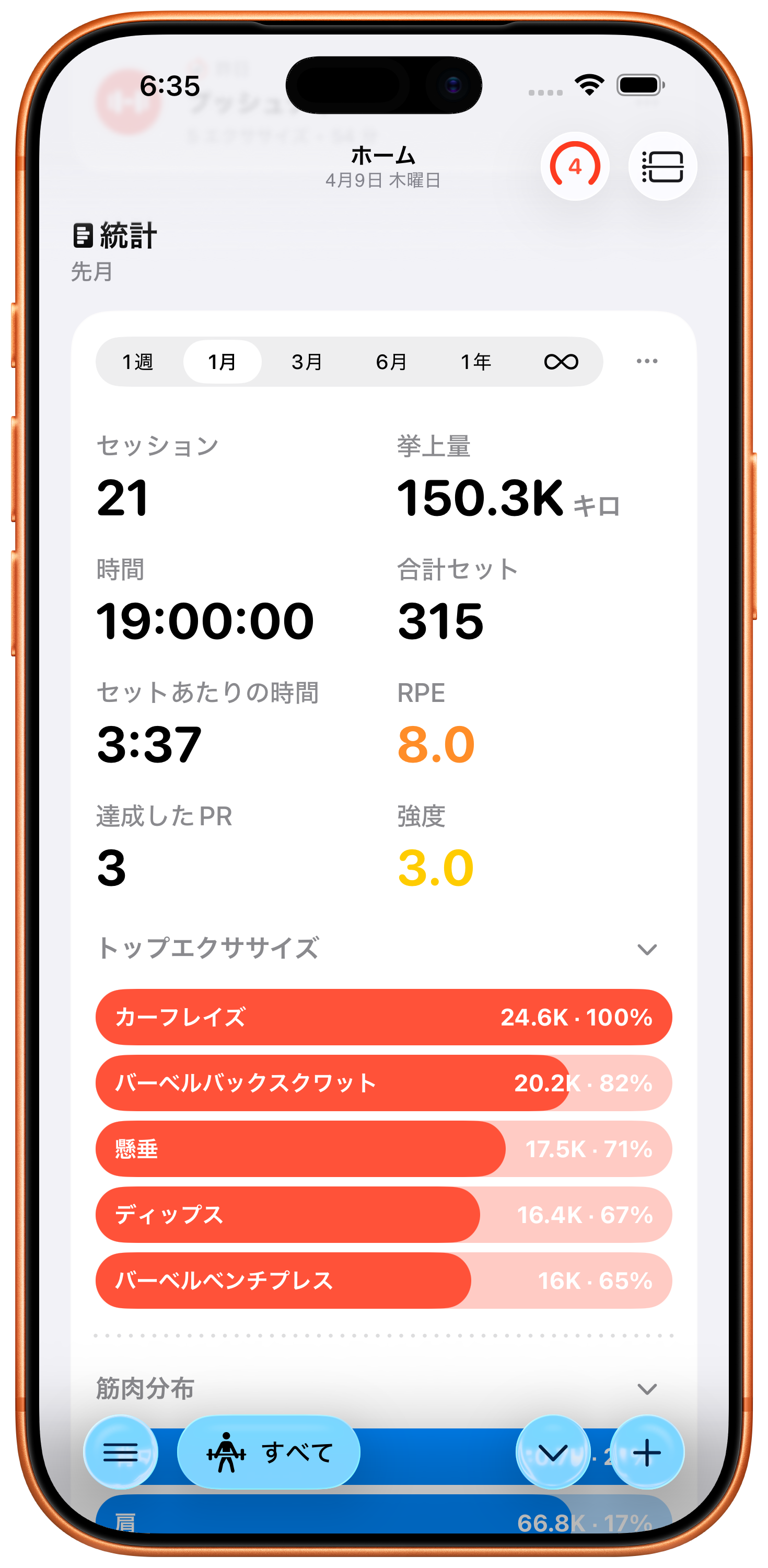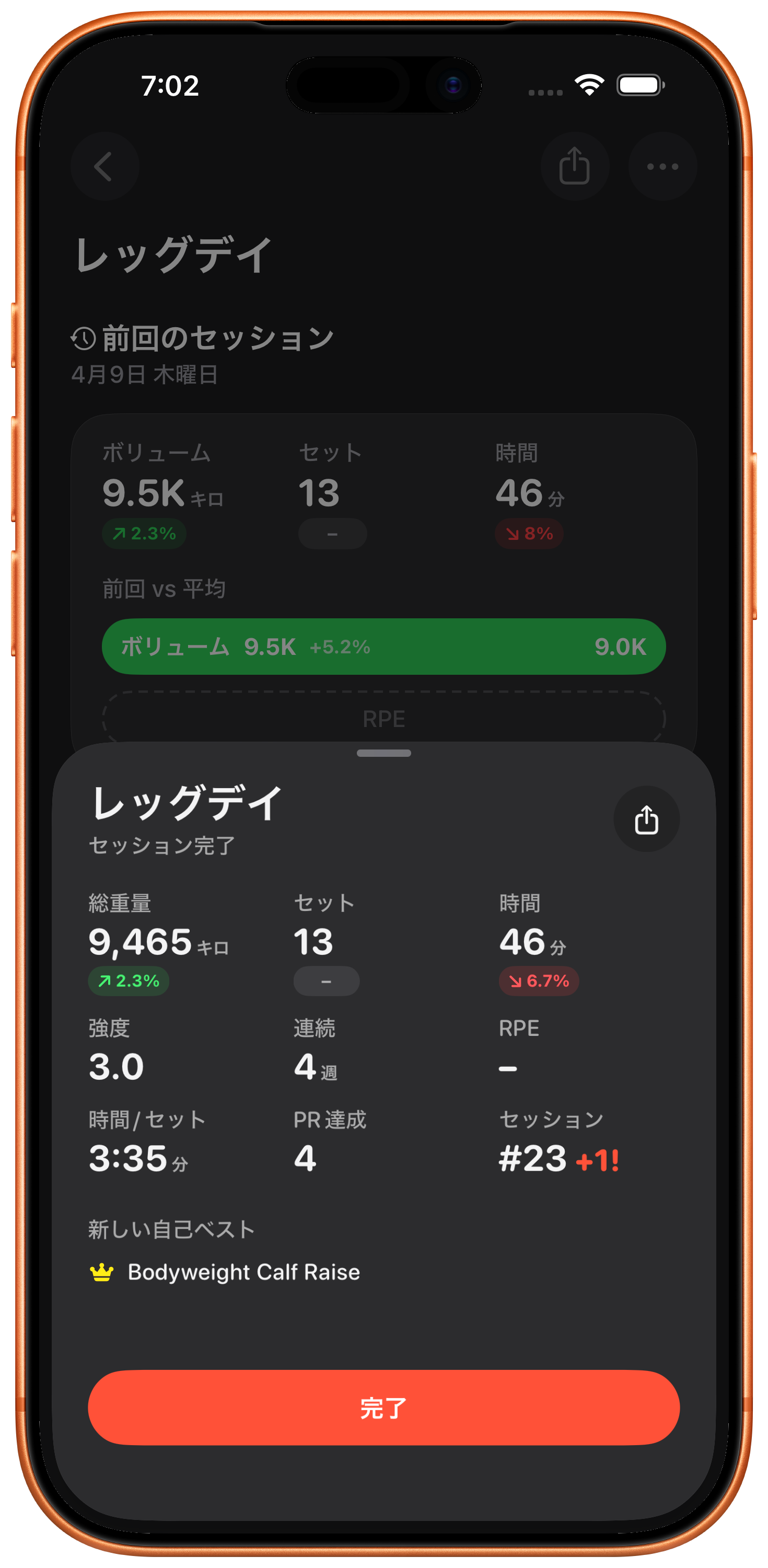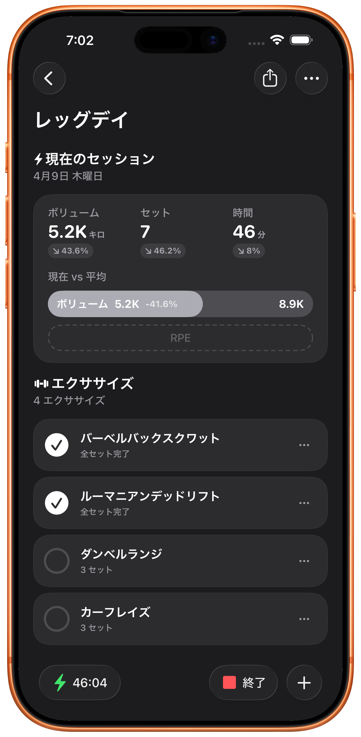 各セット後に自覚的運動強度を記録して、トレーニング強度を微調整し、本当にどれだけハードに働いているかを追跡。