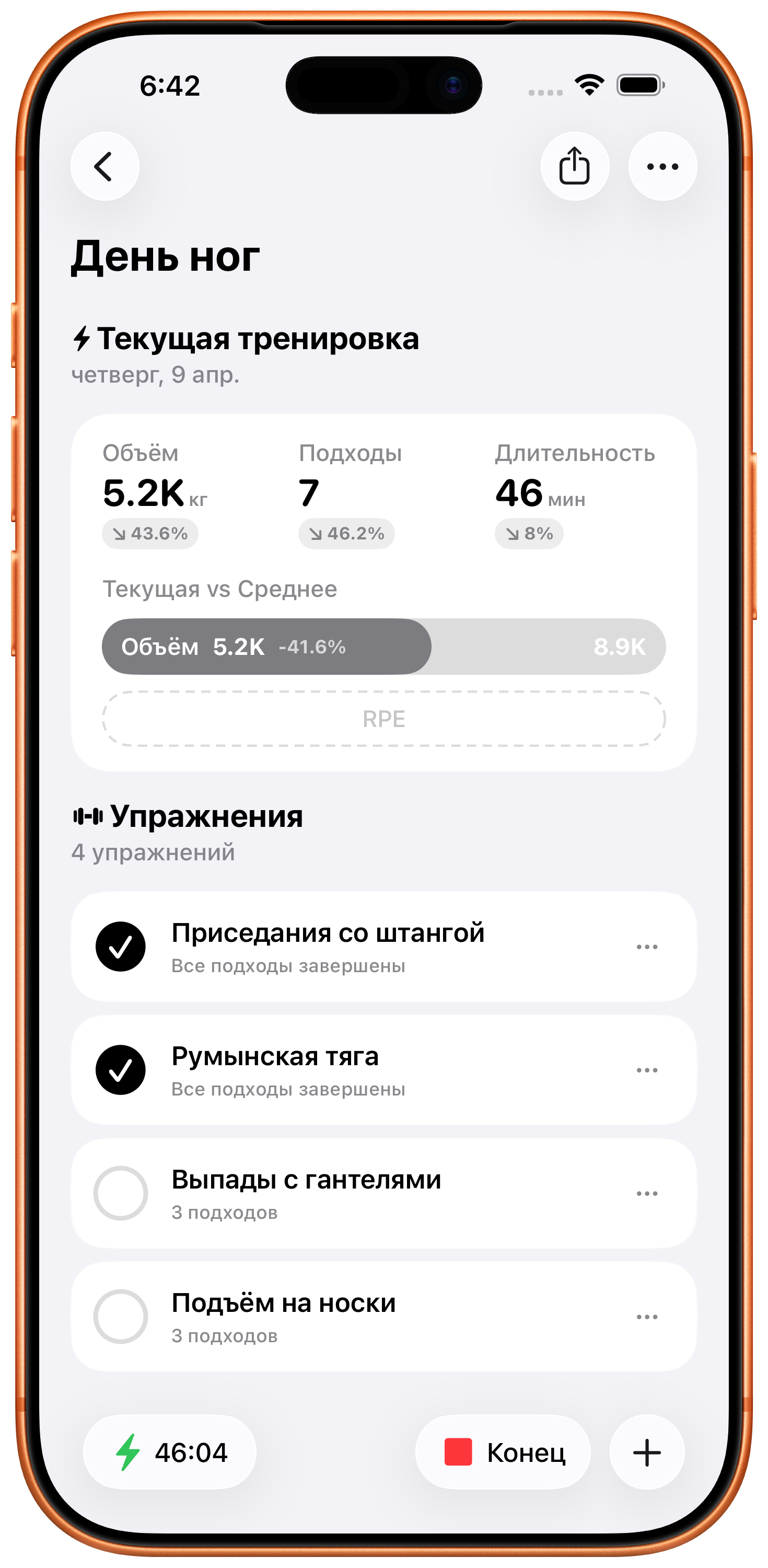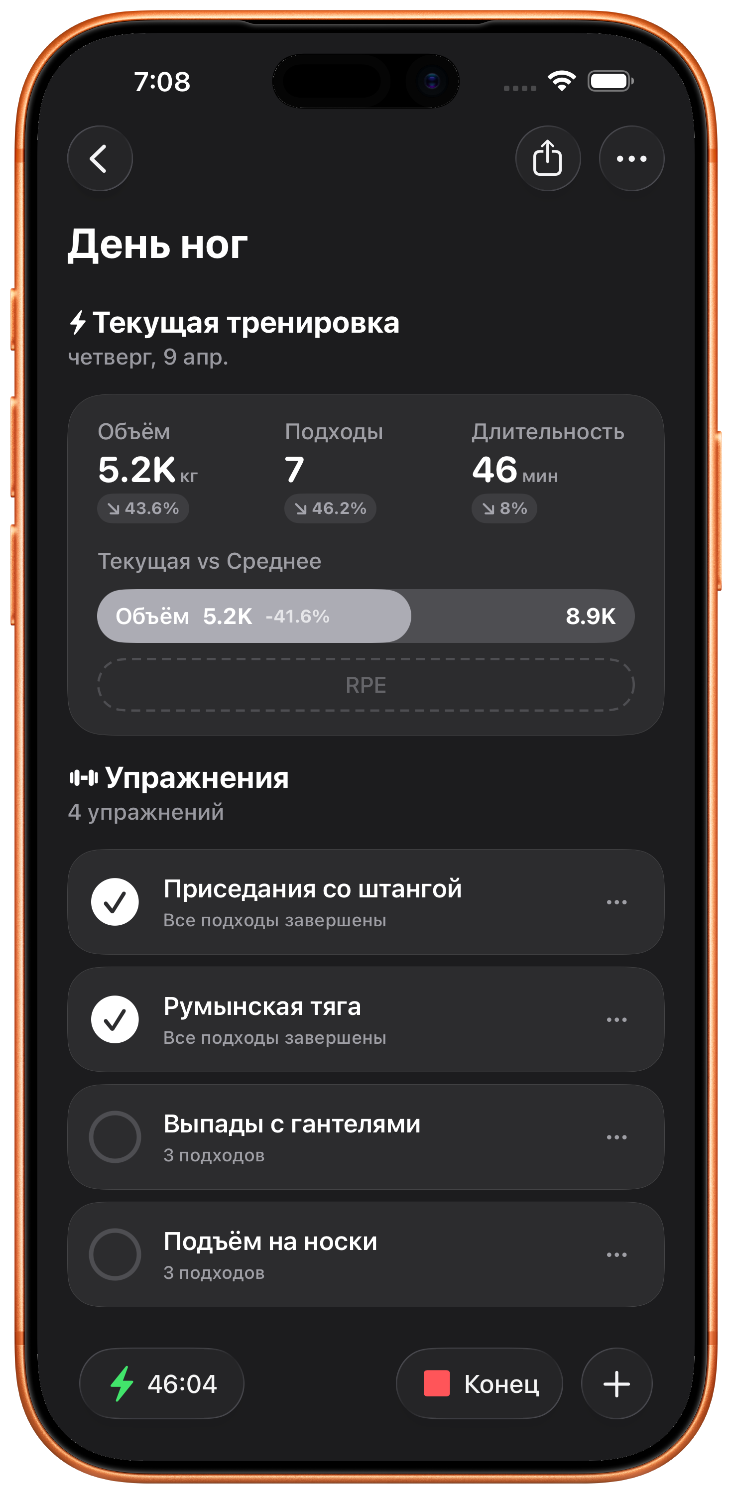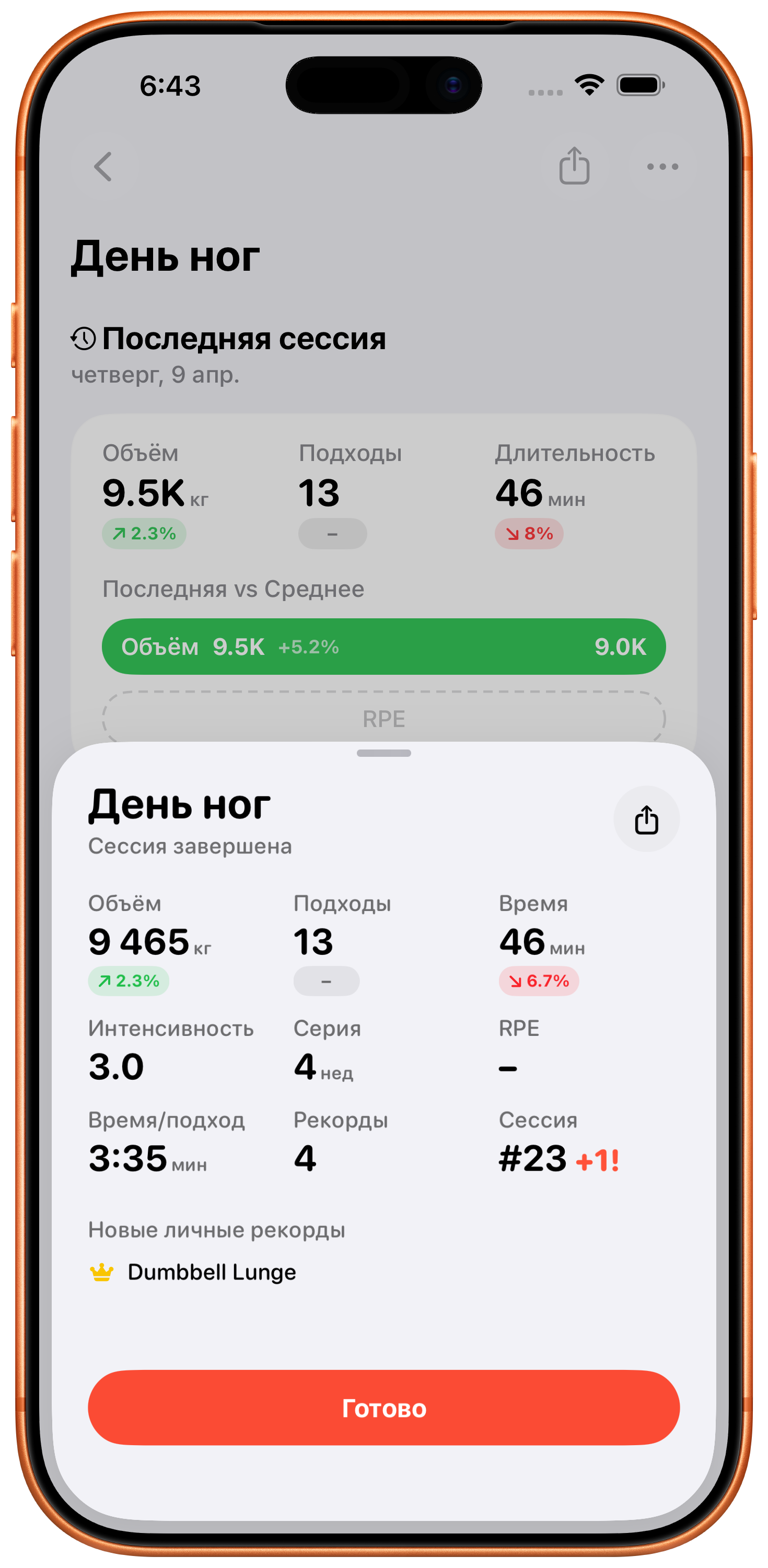 Записывайте оценку воспринимаемой нагрузки после каждого подхода, чтобы точно настроить интенсивность и отслеживать, насколько усердно вы работаете.