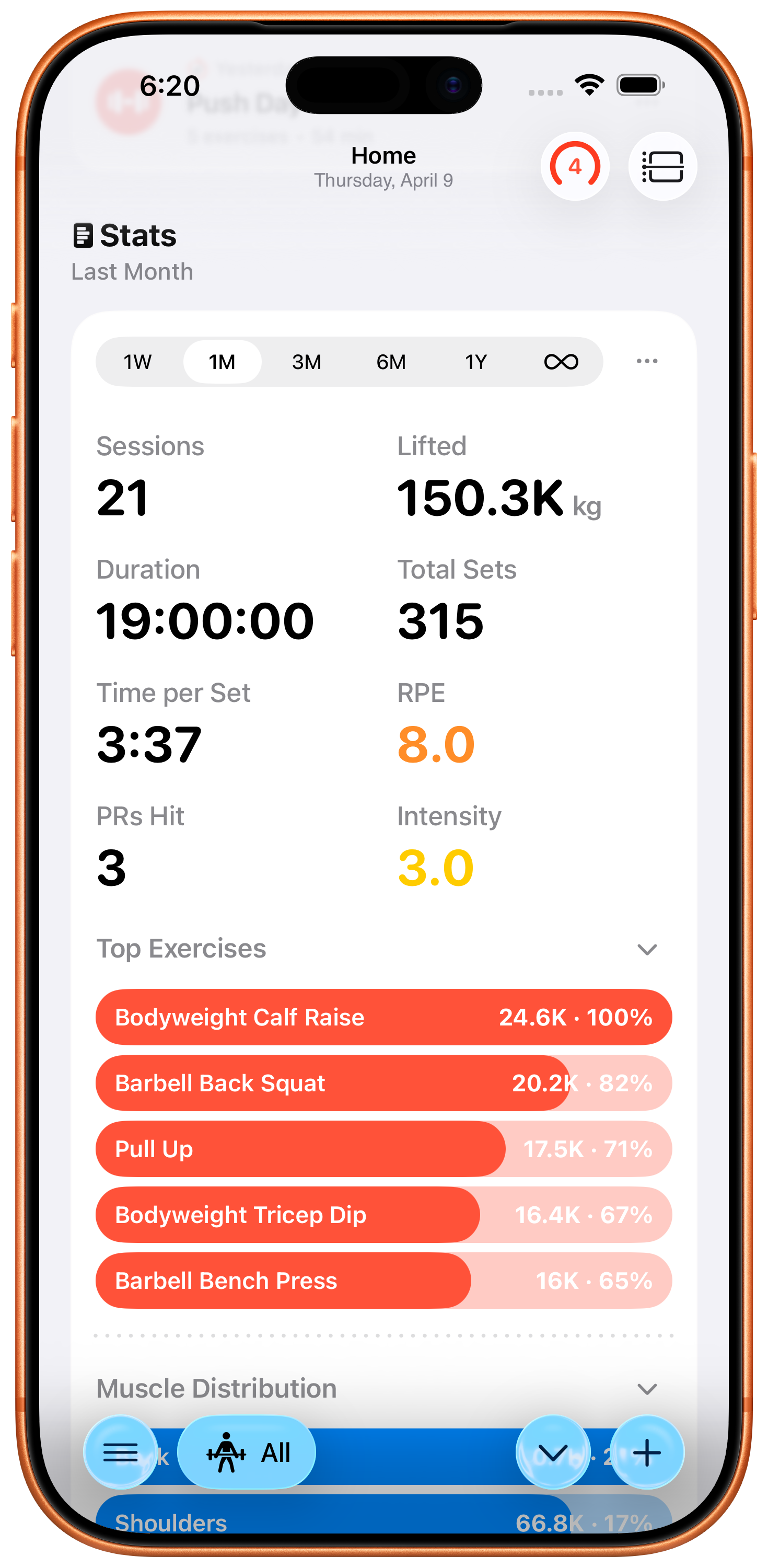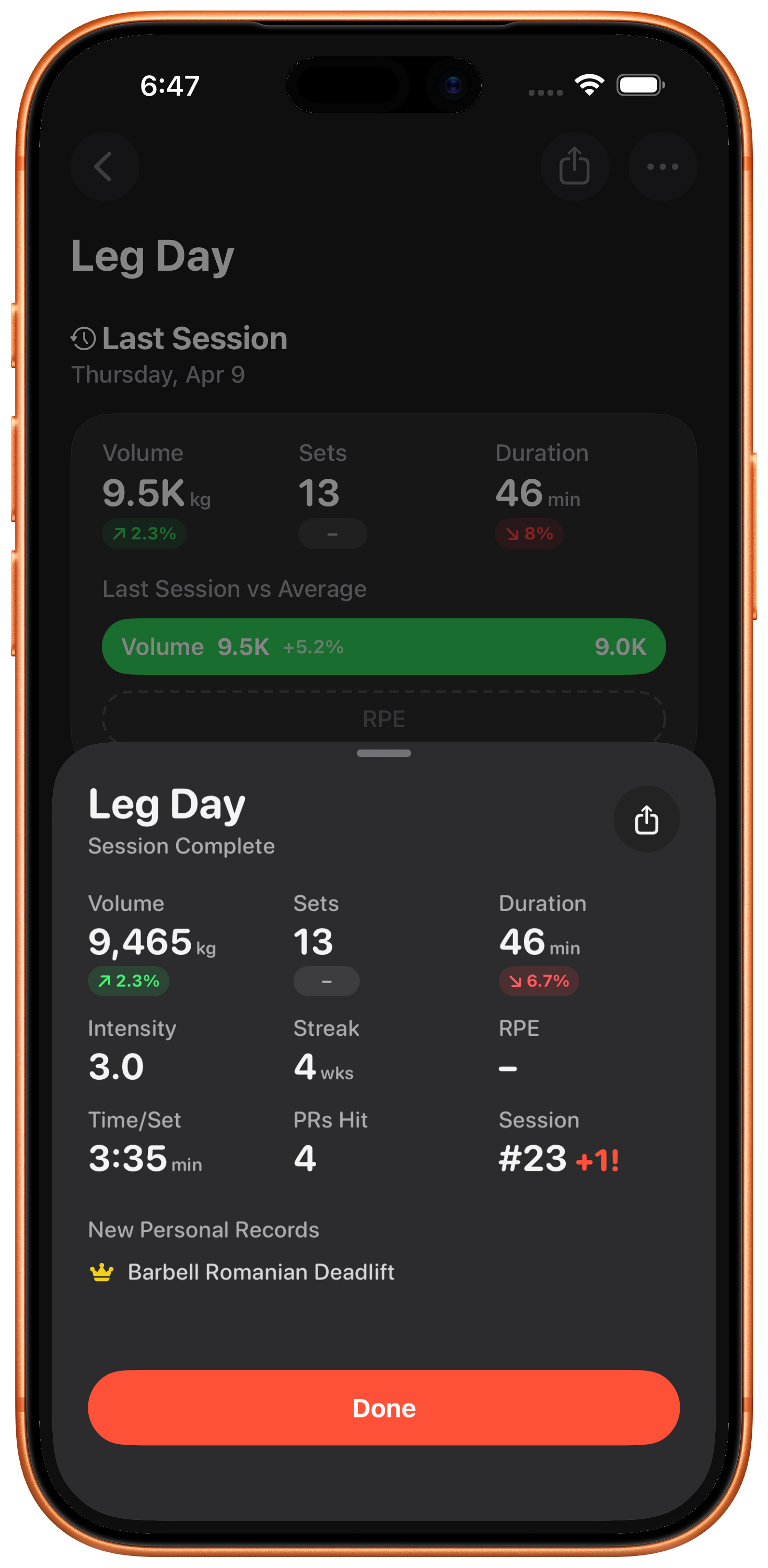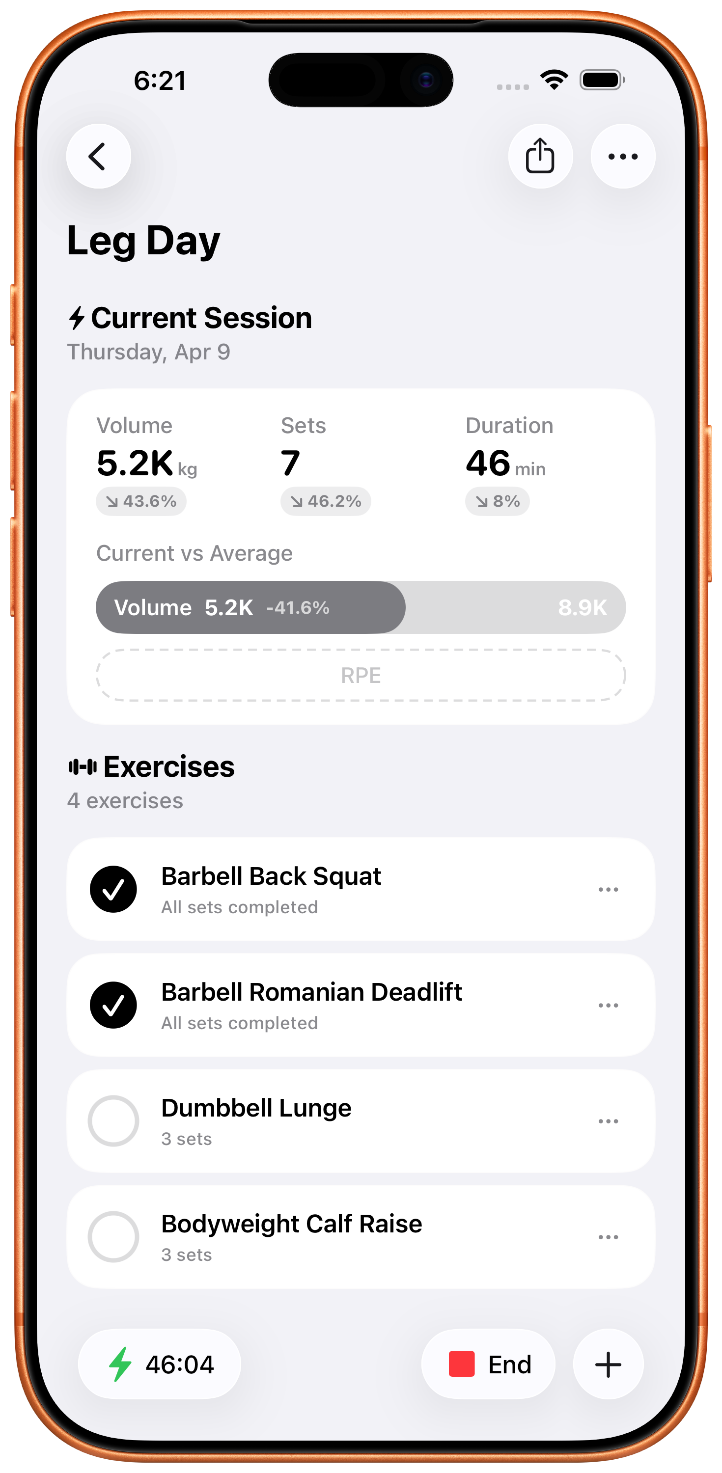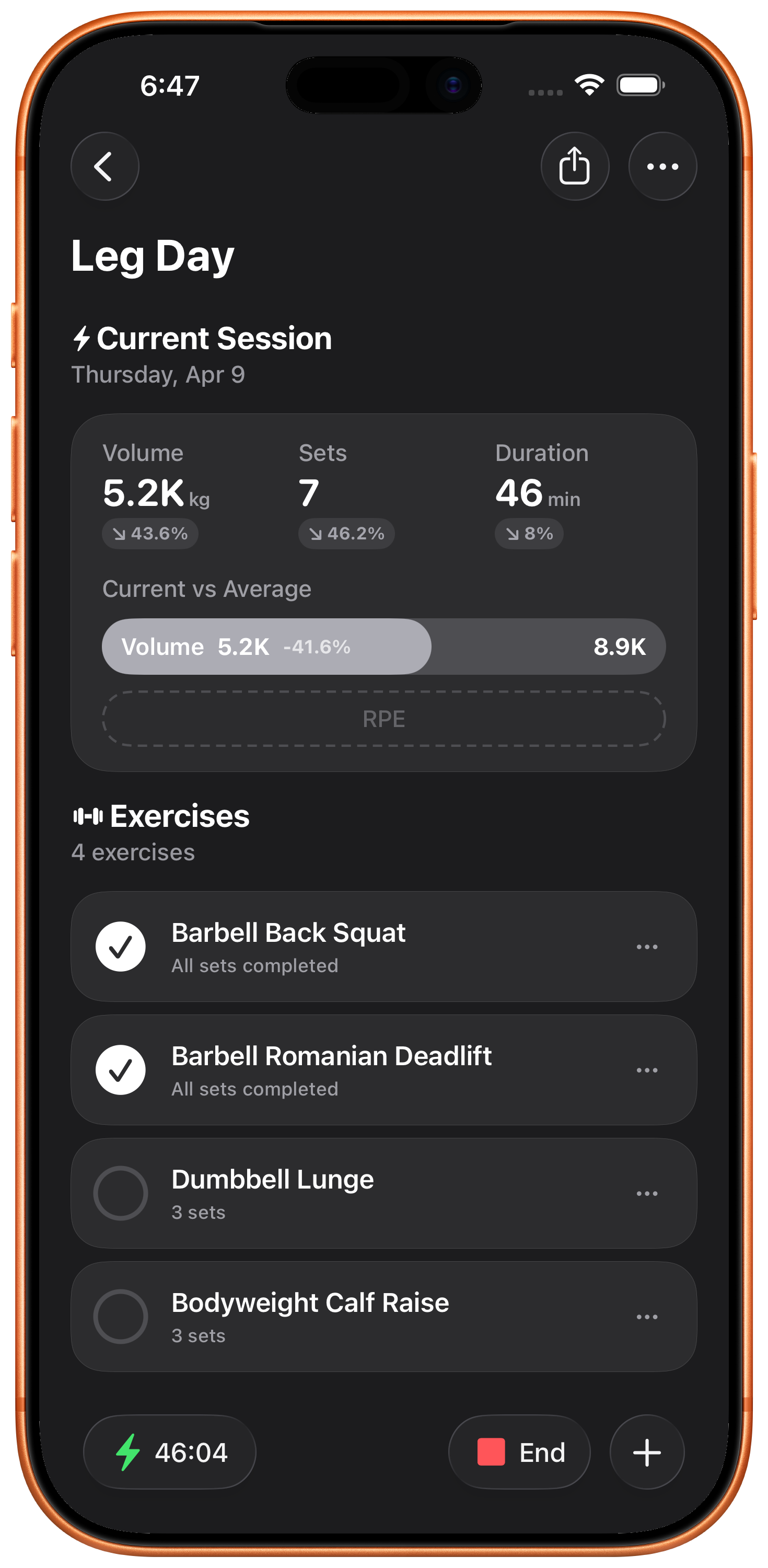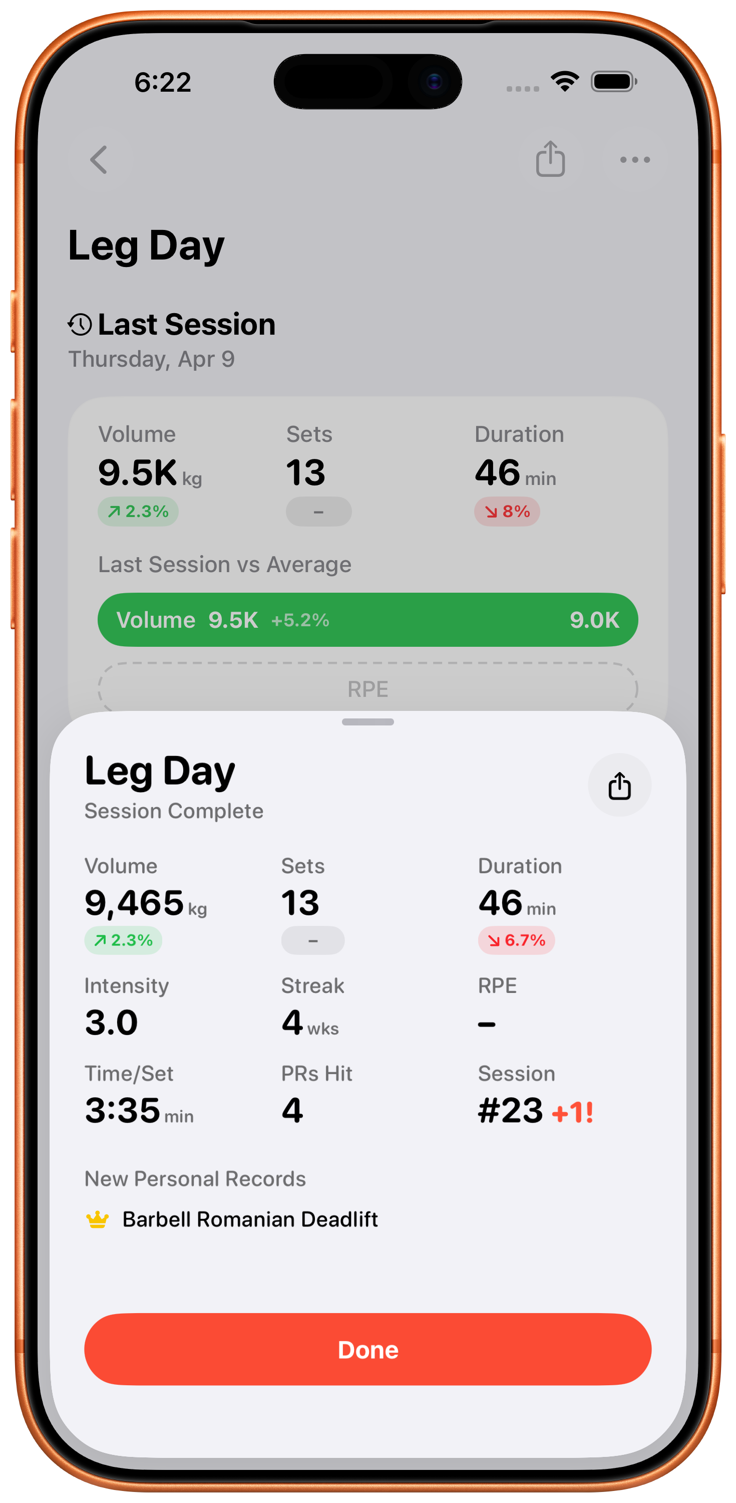 Log your Rate of Perceived Exertion after each set to fine-tune your training intensity and track how hard you're really working.